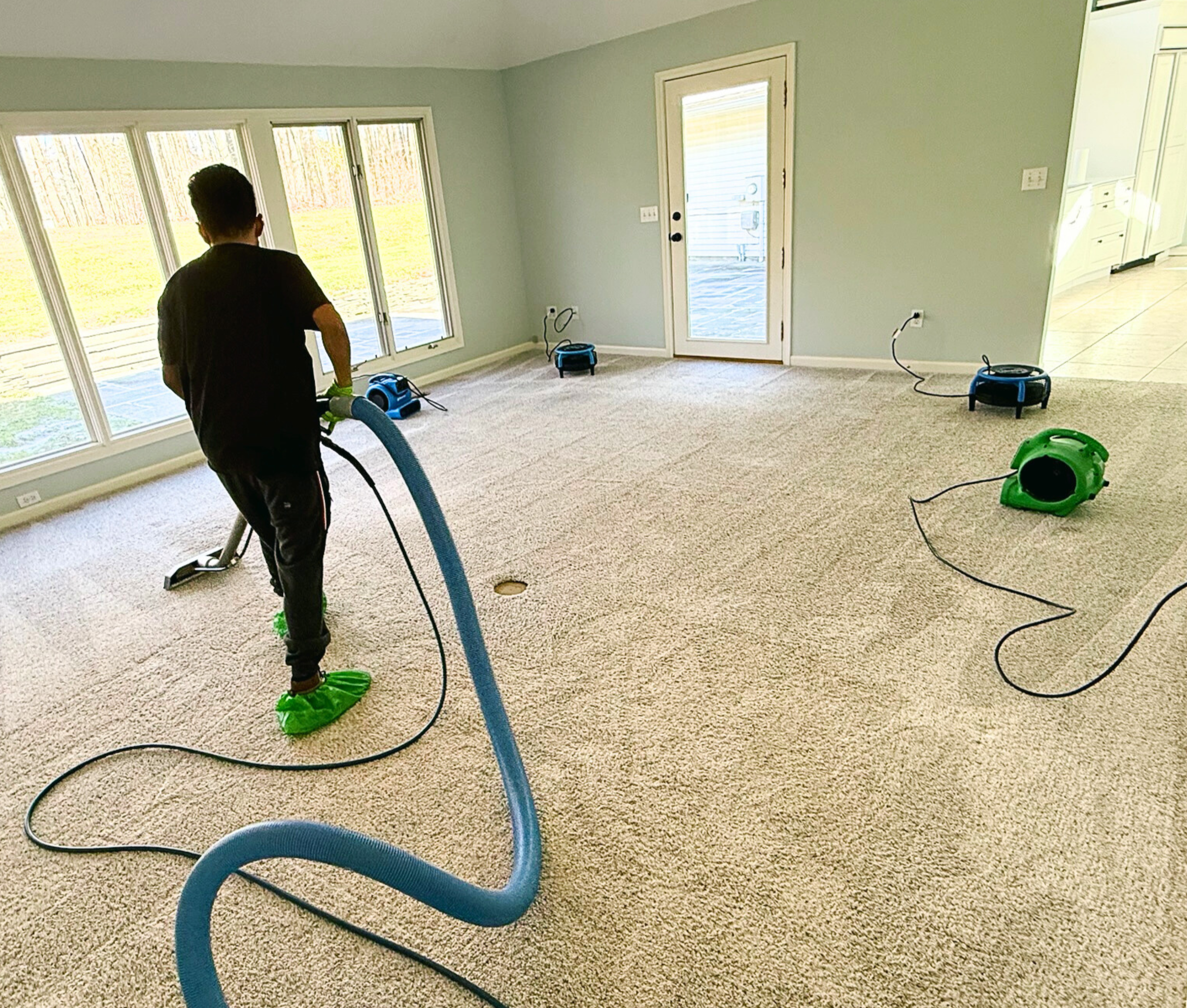 High-powered air movers promote fast drying